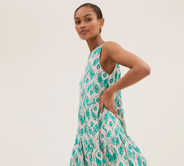 Nothing says warm weather like a joyful floral print that excites you, and this season has been all about optimistic prints and a colour palette that brings with it a bunch of happiness. This vibrant printed maxi dress tops our wardrobe wish list for summer. Featuring a lightweight fabric, collarless neckline and tiers through the midaxi skirt, it ticks all the boxes for wearability during the balmier months. Style it with flattering casual flatforms during the day and ballet pumps to recreate the look for the evening.