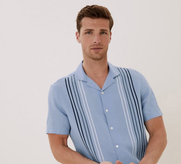 How to add a touch of sophistication to an otherwise casual spring outfit? Play with stripes! Choose shirts, tees & polos with placement stripes (like the one featured) or go for all-over stripes like in this one and instantly transform your outfit to smart-casual. Time to make your zoom calls and date nights easy, carefree & stylish. Pair stripes with denims, chinos or even with shorts & once you have all the compliments coming your way, thank us later!