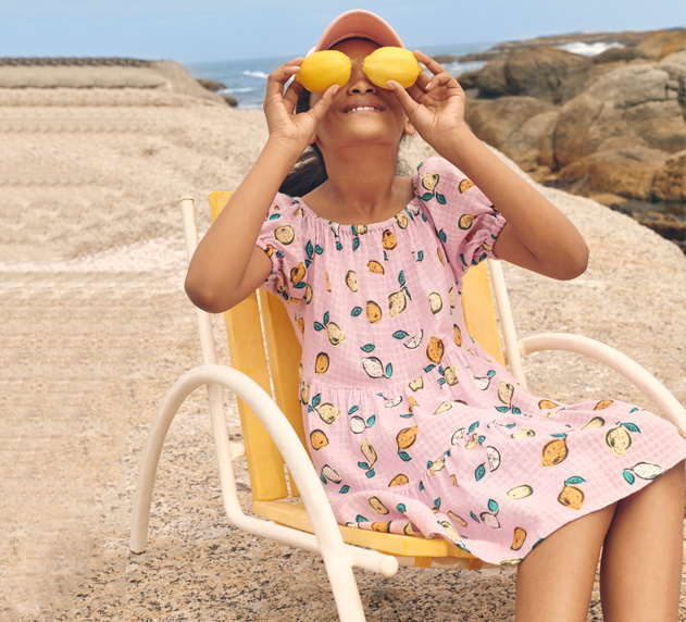 Cut down on the temptation to bring everything but the kitchen sink and maximise their suitcase space by bringing pieces that work for multiple occasions (and will fit seamlessly in their summer wardrobe once you’re home.) We love this statement fruit-print cotton dress, which can be dressed up or down and will look just as good on a sunny day at home.