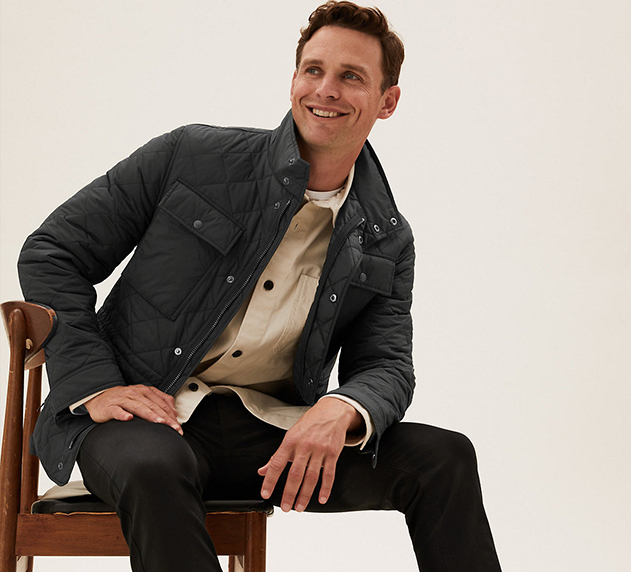 A quilted jacket is a polished but practical top layer that looks great when worn with slim-fit jeans and casual boots. Ours comes with a front zip fastening, four handy pockets and a rain-repelling Stormwear™ finish, making it the ideal jacket for changeable winter weather. Add a brightly coloured feather and down gilet or an overshirt for a cosiness boost when the temperature drops.