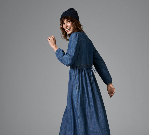 Bolster your spring wardorbe with a standout denim dress. A fresh take on smart-casual, this denim midi features a collarless neckline and flattering tie-waist detail – light-hearted & easy. Wear with your trusty Chelsea boots until sandal weather arrives.