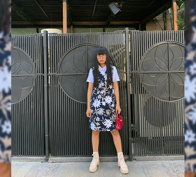 A floral dress for spring is undoubtedly a wardrobe classic. According to experts, you take one part simple silhouette-like this dress and one part a statement-making piece of clothing or accessory and mix it all together to make a casual-outing worthy outfit. Like in this case, a concoction is prepared with the dress, a shirt tucked in, boots and a handbag!