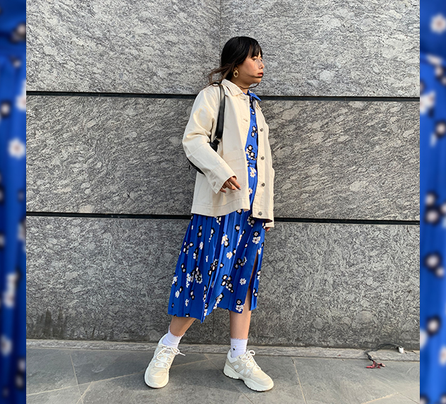 A floral dress for spring is undoubtedly a wardrobe classic. Here are our tips and tricks to wear your favorite dress all-season long! Basically, you take one part simple silhouette-like this dress and one part a statement-making piece of clothing or accessory and mix it all together!