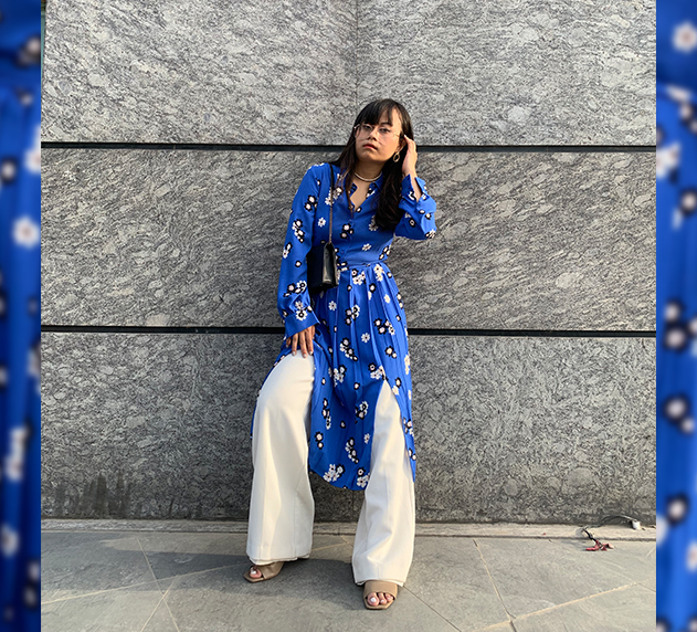 You can also anchor your work from home wardrobe around this dress. Balance the busy print with a smart blazer and up your smart-casual game. Accessorise the look with a belt and your favorite heels for those meetings when you have to look ultra-sophisticated but won’t matter if they transition into an evening out with the girls!