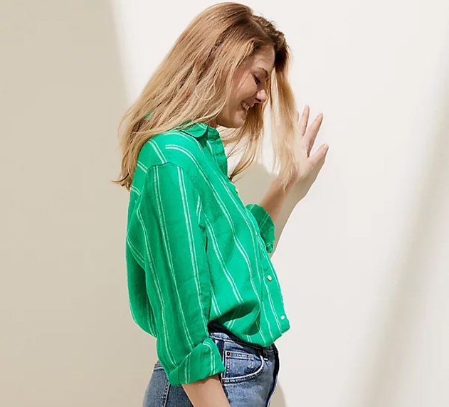 Smart enough to wear with formal pants but equally at home paired with shorts, a linen shirt is the ultimate hybrid-working hero. And we don’t mind that pop of color either (like in the featured shirt). High on sustainability credentials, our shirts will slot into your summer outfit rotation effortlessly. Don’t miss out on the prairie details on summer blouses as well – they’ll be great to add that soft romantic and feminine touches to your closet.